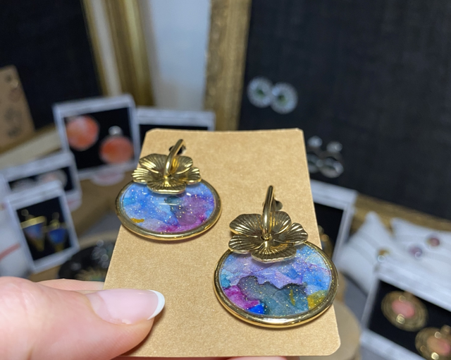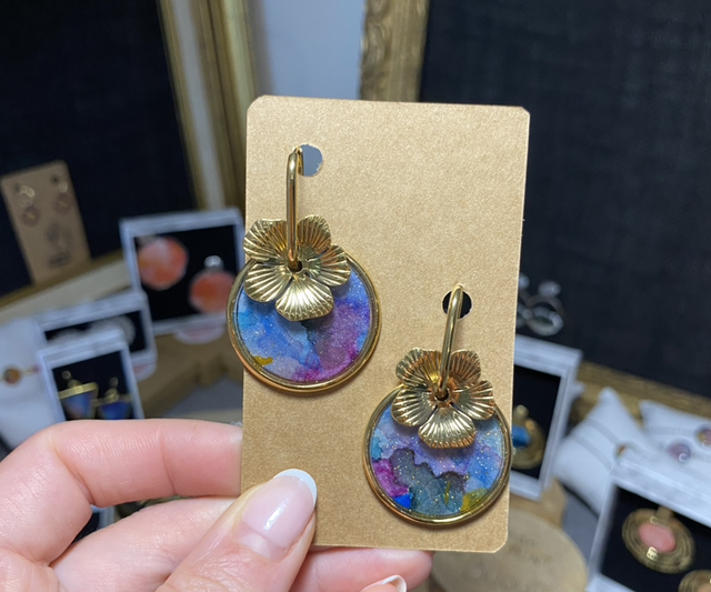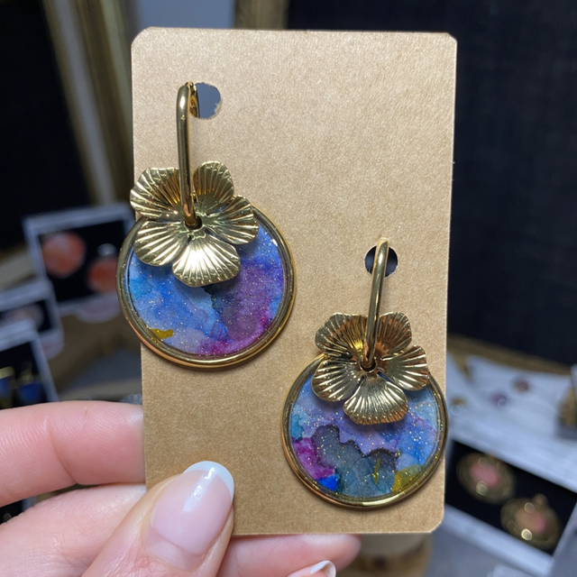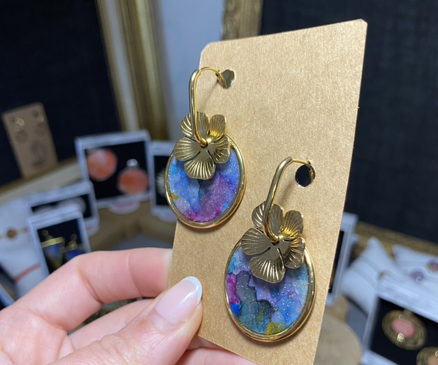 Matière : acier inoxydable / aquarelle / résine UV / paillettes