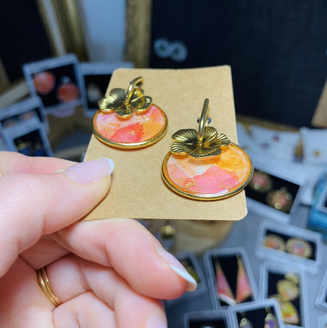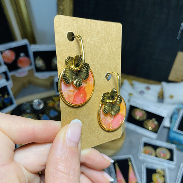Matière : acier inoxydable / aquarelle / résine UV / paillettes / feuilles d’or